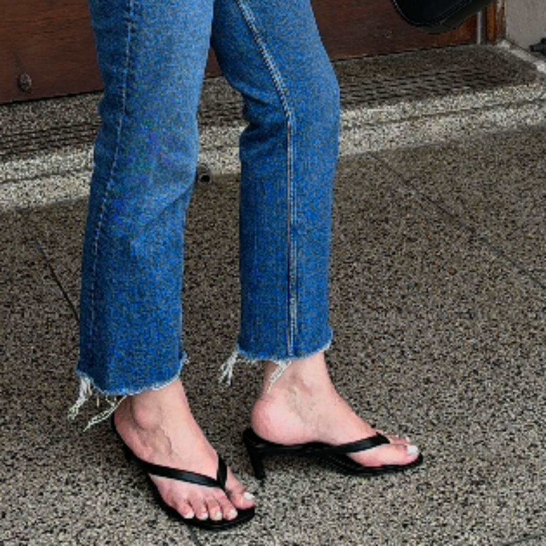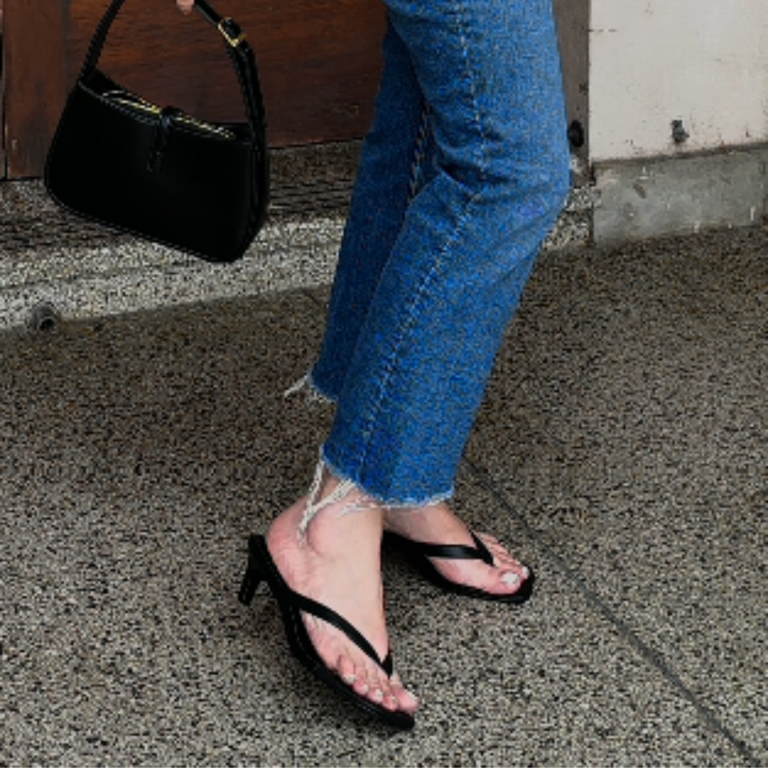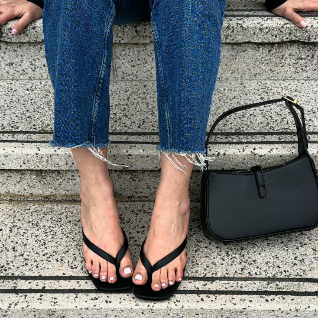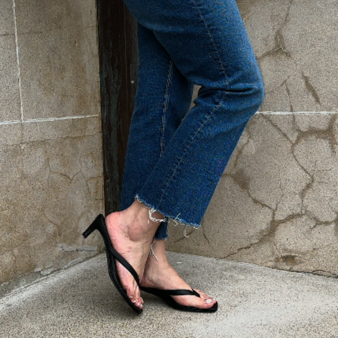 PREORDER- ETA 3-4 weeks from order. Accommodates wide feet. The Sid Heel is sleek and versatile — the perfect balance of minimal design and comfort. With a refined thong strap and easy-to-wear kitten heel, this style elevates both casual and dressy looks. A wide-fit base and cushioned insole keep it wearable from desk to dinner. Sleek thong sandal design with kitten heel Cushioned insole for lasting comfort Wide-fit last with flattering silhouette Classic black tone for endless styling