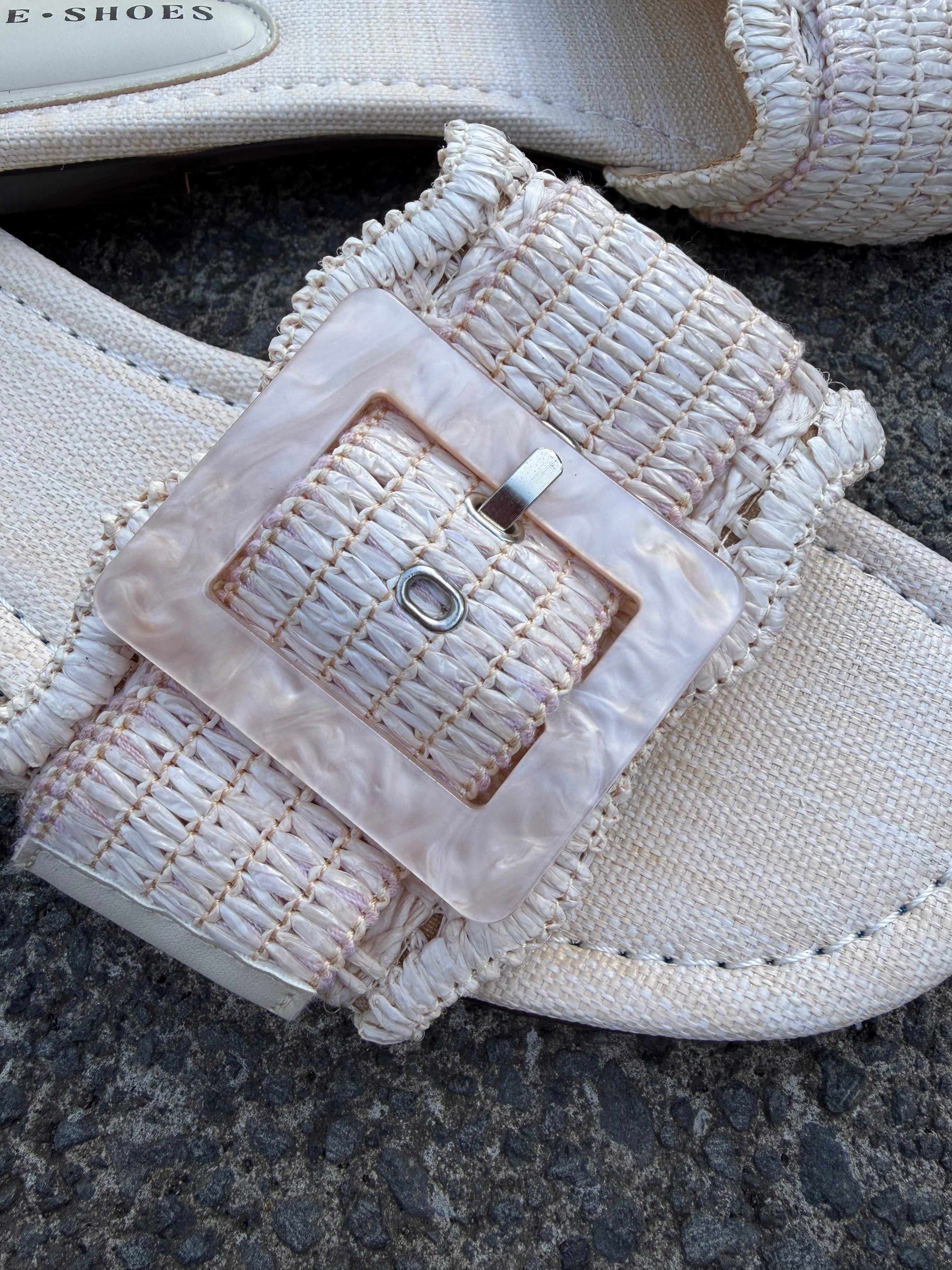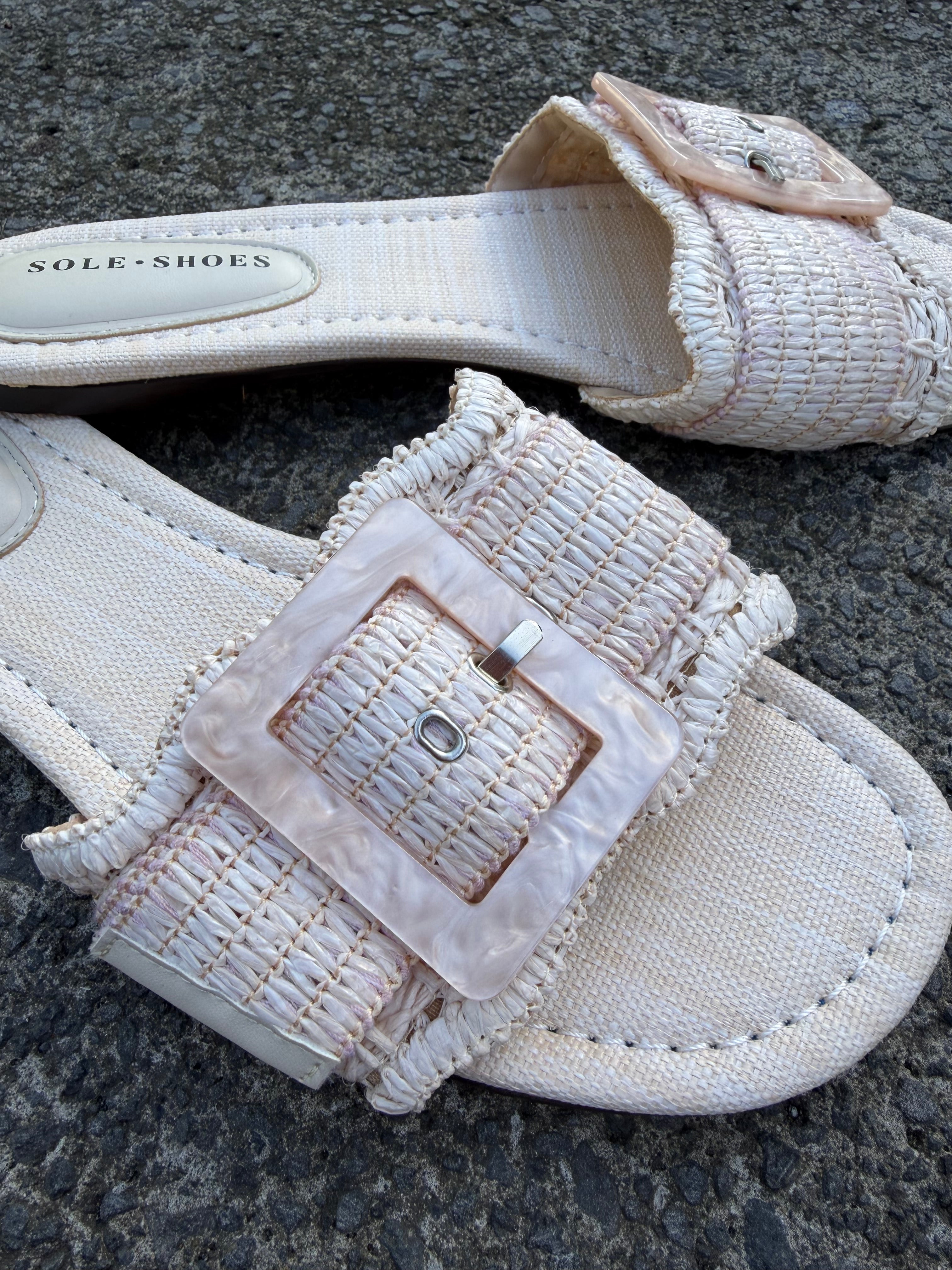 The Isla Flat is an effortless summer staple. Hand-woven raffia brings natural texture and laid-back charm, while the sleek almond-toe silhouette keeps it refined. Lightweight and versatile, this flat pairs as easily with denim as it does with airy dresses — the ultimate warm-weather essential.